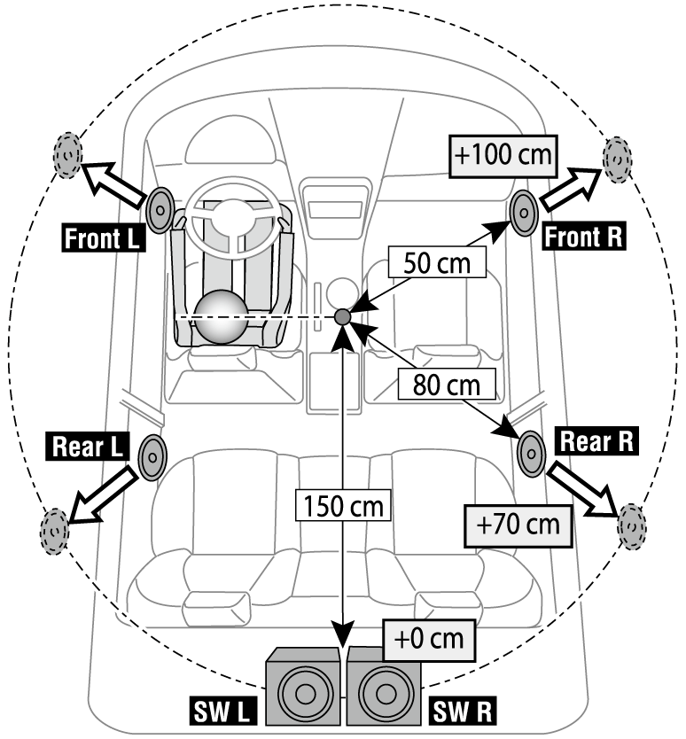 Zur Feineinstellung des Lautsprecherposition-Kompensationswertes gemäß Einstellung unter <5-3. Auswahl des Fahrzeugtys>.