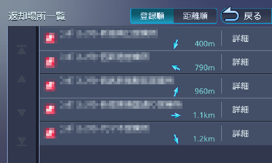 - 返却場所を距離順で表示します。