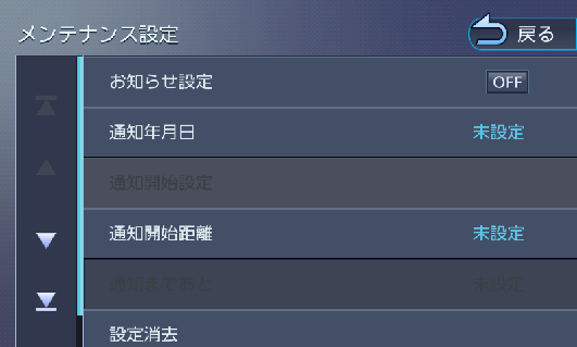 - [通知開始距離]は「バッテリー交換」、「車検」、「法定点検」、「お好み1」、「お好み2」では設定できません。
