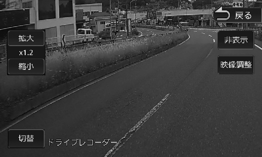 現在地図画面から表示する【現在地/AV】を押す[V.ルームミラー]をタッチするバーチャルルームミラーの映像が映像が子画面で表示されます。[V. ルームミラー]をもう一度タッチすると子画面が消えます。7バーチャルルームミラーを全画面表示にするバーチャルルームミラーを全画面表示にできます。バーチャルルームミラー表示内をフリックまたはドラッグする