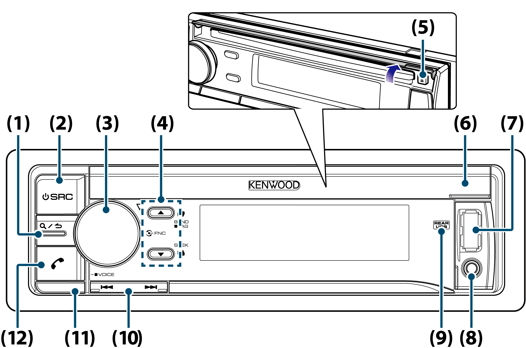 عند الاستماع إلى جهاز iPod أو ملف صوتيات أو أسطوانة CD أو راديو، اضغط على هذا الزر للدخول إلى طريقة البحث.