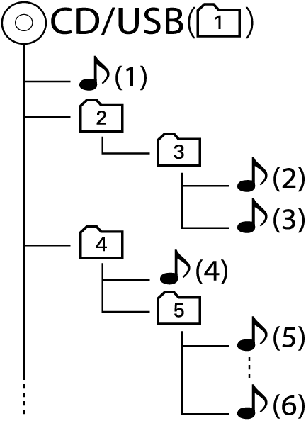 In the example of folder/file tree shown below, files are played in the order of number from (1) to (6).