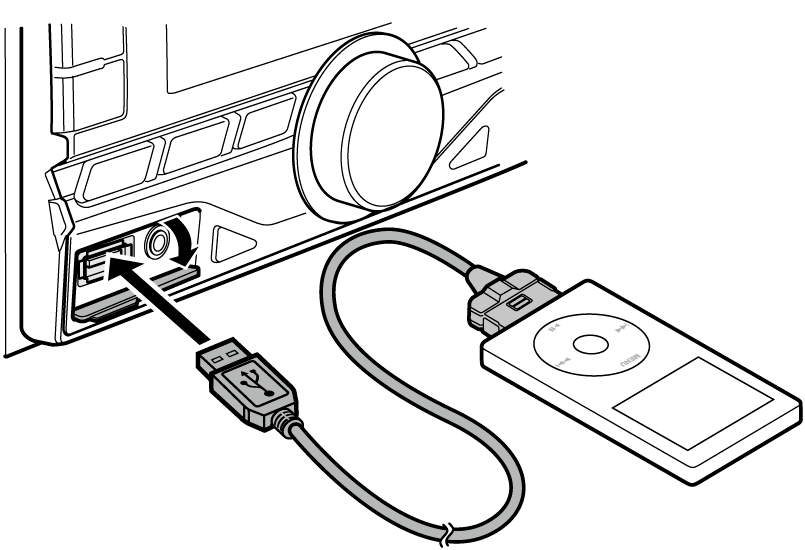 Connect the iPod to the USB terminal using KCA-iP102 connecter (optional accessory).
