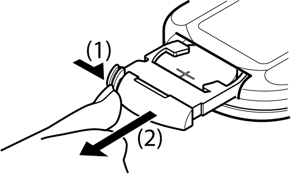 Pull the battery sheet out from the remote control unit in the direction of the arrow.