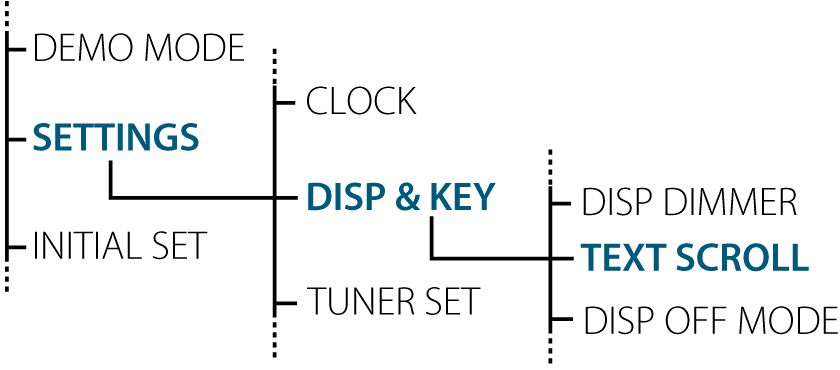 2 Use the [Control knob] to select "SETTINGS" > "DISP & KEY" > "TEXT SCROLL".