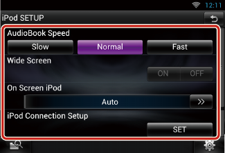 ضبط كيفية عرض معلومات جهاز iPod. Auto (القيمة القياسية): تظهر المعلومات لمدة 5 ثوان عند التحديث. OFF «إيقاف»: لا يعرض أية معلومات. |