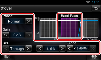 ضبط فلتر جهير النطاق. (عند اختيار سماعة النطاق الأوسط على شاشة اختيار السماعة) |