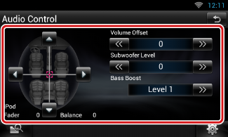 ضبط مقدار تعزيز الجهير بين “OFF” (إيقاف)/ “Level1” (مستوى 1)/ “Level2” (مستوى 2)/ “Level3” (مستوى 3). |