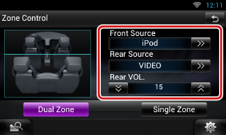 يمكنك اختيار مصادر تشغيل مختلفة لكل من مواضع الجلوس الأمامية والخلفية بالسيارة.