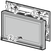 - Při odpojování části předního panelu jí pohybujte směrem dopředu, jak je vidět na obrázku nahoře. Při odpojování směrem nahoru by se přední panel poškodil.