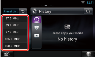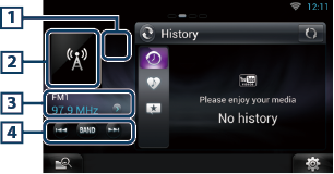Zobrazuje pásmo, frekvenci atd. Klepnutím se vyvolá zobrazení seznamu předvoleb. Viz Výběr předvolby. |