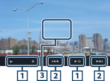 Vyhledá předchozí/následující soubor. Klepnutím a podržením prstu se provede rychlý posun vzad/vpřed. (pouze iPod/iPhone) |
