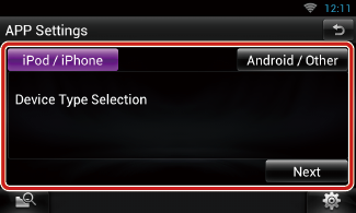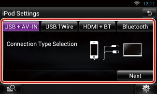 ].Zobrazí se obrazovka nastavení připojení zařízení iPod.