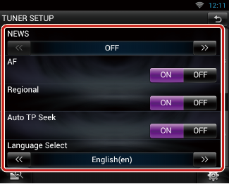 Nastavuje volbu přepnutí na stanici pouze v určitém regionu pomocí řízení „AF“. Výchozí je „ON“. |