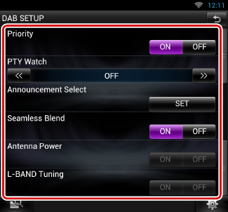Zobrazí se obrazovka DAB SETUP.