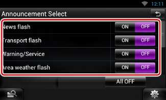 Když je spuštěna služba, pro kterou je nastavena hodnota ON, dojde k přepnutí z libovolného zdroje na oznámení.