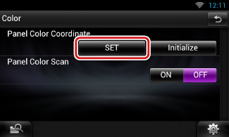- Když je [Panel Color Scan / Skenovat panel barev] nastavený na „off“, můžete klepnout na [SET] nebo [Initialize / Tovární].