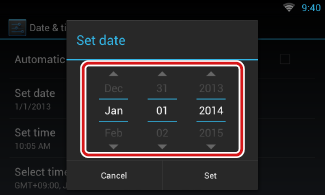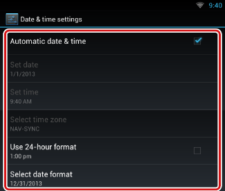 Berühren Sie [Automatic date & time] zum Aufheben der Aktivierung.