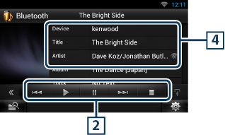Zeigt den Namen der Inhalts-Informationen an. Wenn die Information nicht verfügbar ist, wird der Name des Bluetooth-Geräts angezeigt. |