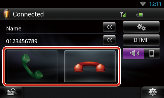 Sie haben Zugriff auf die Spracherkennungsfunktion des mit diesem Gerät verbundenen Smartphones/Handys. Dadurch können Sie durch Aussprechen eines Namens eine Telefonnummer im Smartphone/Handy-Telefonbuch suchen lassen. (Die Funktionalität ist vom jeweiligen Handy abhängig.) 1 Berühren Sie [ 2 Sprechen Sie den Namen. |