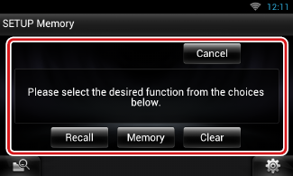 Die Einstellungen für Audiosteuerung, AV-IN-SETUP, Kamera und Audio-SETUP können gespeichert werden. Die gespeicherten Einstellungen können jederzeit wieder aufgerufen werden. Selbst wenn die Einstellungen beispielsweise aufgrund eines Austauschs der Batterie gelöscht wurden, können die Einstellungen wieder hergestellt werden.