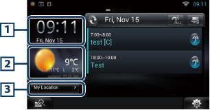 Muestra la previsión meteorológica para la región seleccionada. Al tocar aquí se inicia la aplicación de meteorología. |