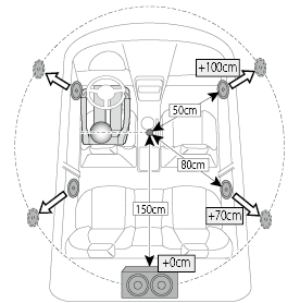 - Si especifica la distancia desde el centro de la posición de escucha establecida en la actualidad a cada altavoz, el tiempo de retraso se calcula y ajusta automáticamente.