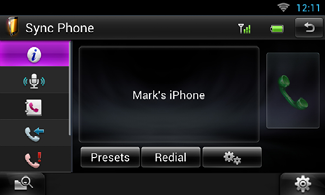 : Visualiza a tela de controle da função Bluetooth Hands-Free fornecida para o veículo.