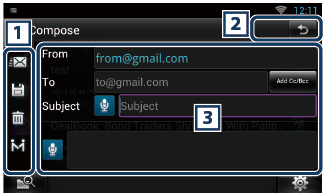 [Add Cc/Bcc] (Adicionar Cc/Bcc): Exibe cc e Bcc. |