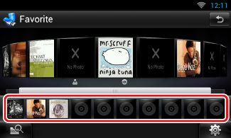 - A lista de favoritos é reproduzida da esquerda para a direita, começando pelo álbum selecionado.