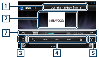 Toque para visualizar o “Menu de subfunções” (7 nesta tabela). Toque e mantenha pressionado para alternar entre a lista de trilhas e as informações de tag ID3 (somente CD). |