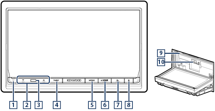- DNN9710BT: Una ranura para tarjetas SD para actualizar el mapa. Para obtener información sobre cómo actualizar el mapa, consulte el manual de instrucciones del sistema de navegación.