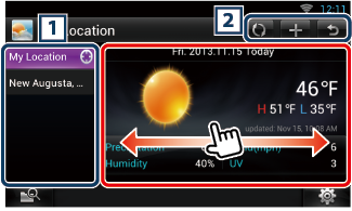 Le permite establecer el intervalo de actualización de la información, etc. Consulte Configuración de meteorología. |