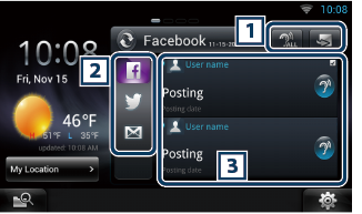 Muestra el contenido seleccionado en Categoría en un nuevo orden. Al tocar aquí se inicia la aplicación SNS y se muestra su contenido. Si se muestra la información más reciente en la parte superior, podrá deslizarse por la lista para actualizar la información.