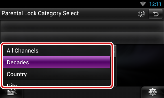 - 3 Toque [SET] de [Parental Lock Channel Select] (Selección de canal de bloqueo para menores) en la pantalla SiriusXM SETUP.