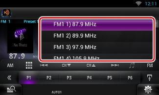 ] y después [Preset List / Presintonías] se visualiza la lista de canales predeterminados. También puede seleccionar el canal deseado de la lista.