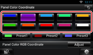 - 1 Toque [Adjust / Ajustar] en la pantalla Panel Color Coordinate.