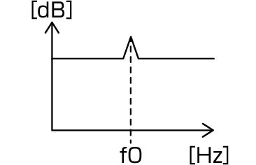 - Częstotliwości w pobliżu określonej częstotliwości (f0: częstotliwość środkowa) są podwyższane lub tłumione. Użyj tego w następujących przypadkach, na przykład: