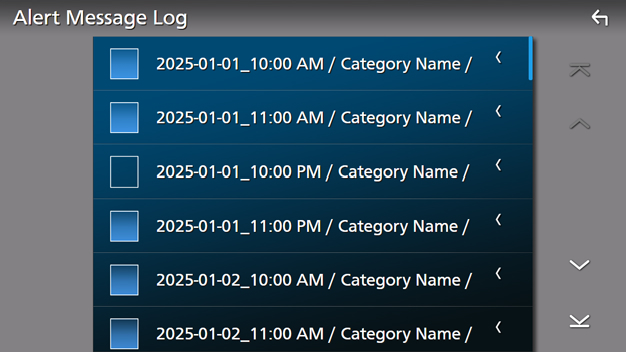 Touch [Alert Message Log]. - Select the desired Alert Message from the list.