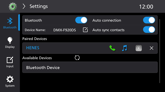 BeállításNyomja meg a / gombot.Érintse meg a gombot.Az egyes beállításokhoz tekintse meg az alábbi fejezeteket.Bluetooth beállításaKijelző beállításaBemenet beállításaRendszerek beállításaTovábbi információkBluetooth beállításaKijelző beállításBemenet beállításaRendszerbeállítás