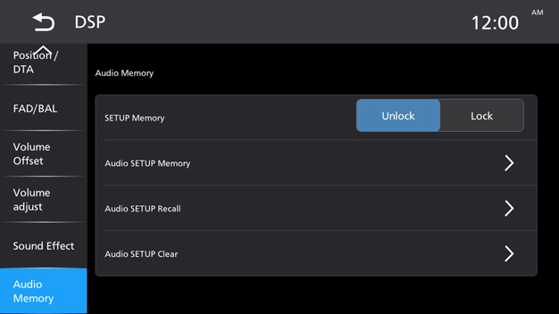 Lock or unlock the Audio SETUP Memory/Recall/Clear.