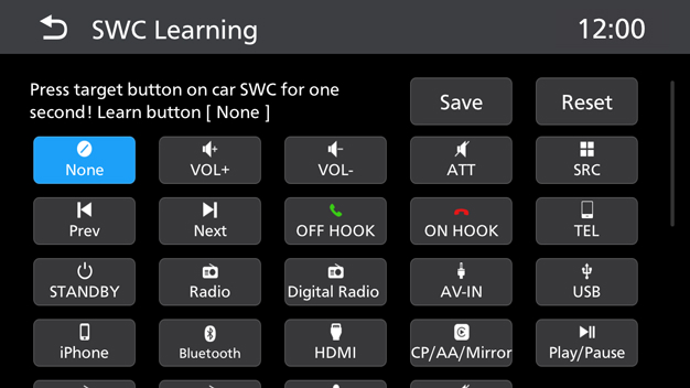 Tryck för att öppna inställningsskärmen för SWC-inlärning.