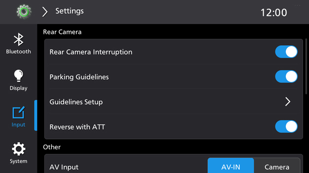 Ställ in om bilden från AV-IN-kameran ska återspeglas på en annan enhet eller ej. Detta alternativ är otillgängligt när ”AV Input” är inställt på ”AV-IN”.