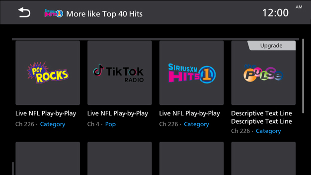 pour accéder à l'écran de la liste associée. - Touchez pour lire le canal sélectionné.