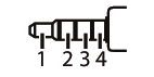 ⑦ | This jack accepts either AV-IN or front view camera input. For more information, see Input Setup. 3.5 mm 4 pole mini plug (1; Left audio, 2; Video, 3; Ground, 4; Right audio)