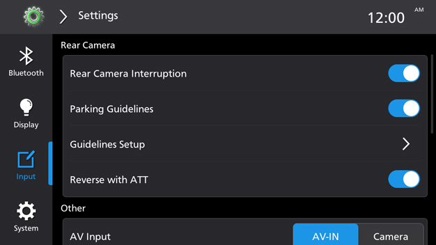 - 关: 倒车时不会自动显示摄像头屏幕。