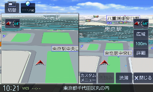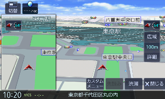 1. 2画面表示中も、背景の現在地図画面は、地図の縮尺の変更やスクロールなどの操作ができます。