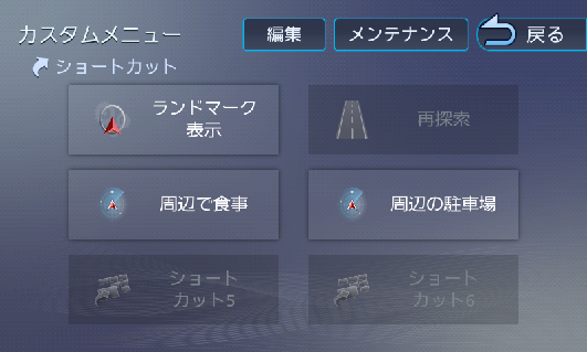 レンタルモードに切り替えると、「カスタムメニュー」と「目的地検索」画面がベーシックモードからレンタルモードに切り替わります。