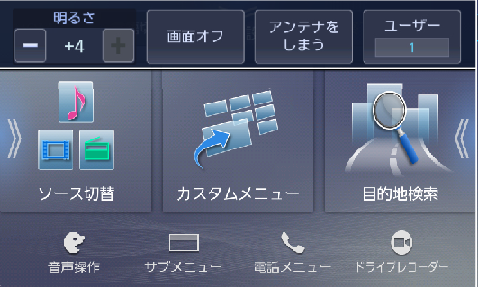 サブメニュー 画面の明るさ調整や、画面をオフ、ユーザーを切り替えるボタンなどを表示します。 サブメニューを使う