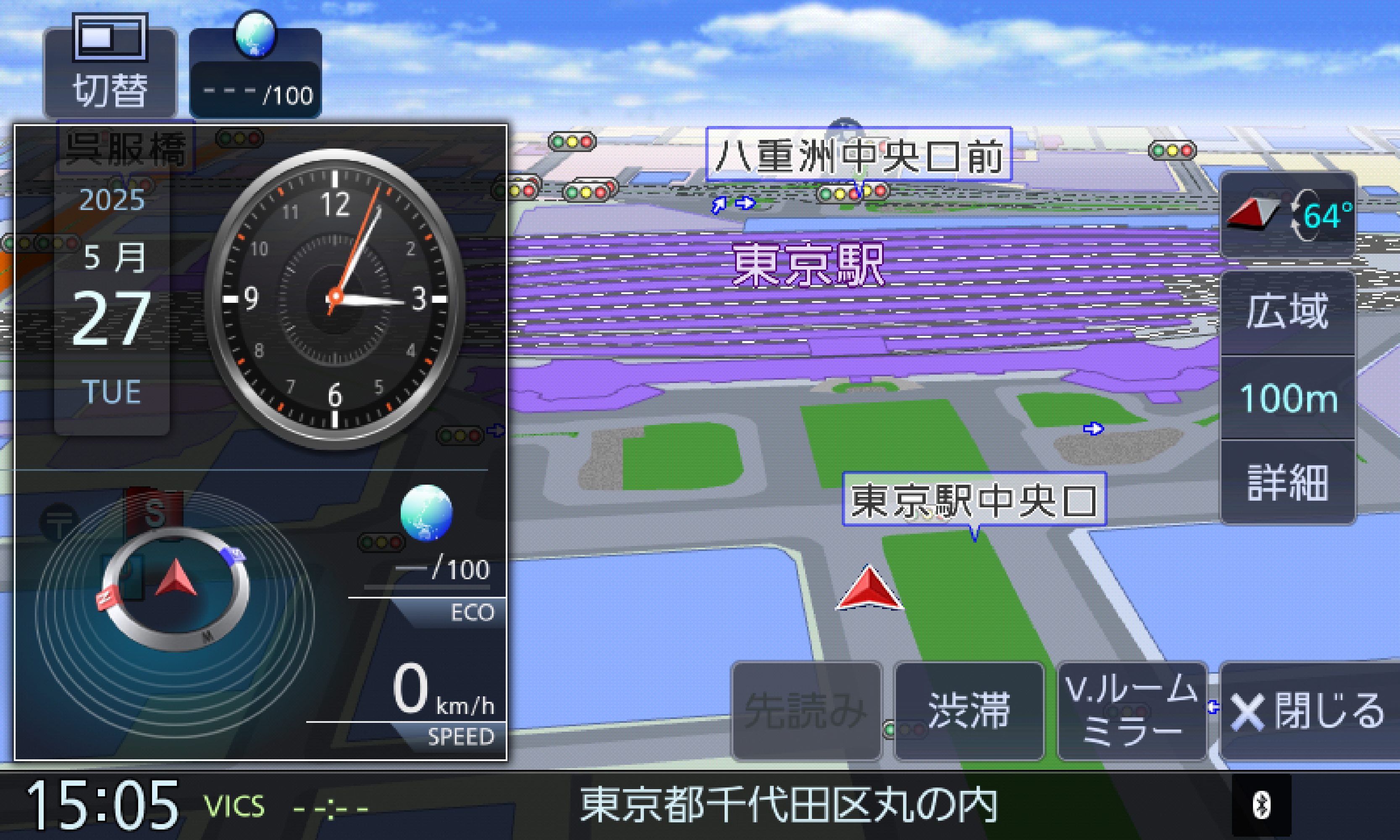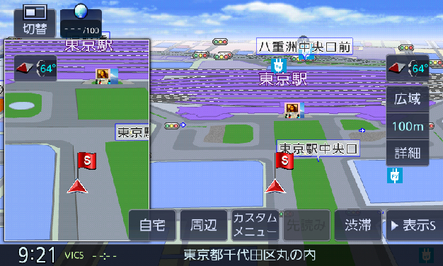 - 現在地図の上に異なる縮尺の地図子画面を表示します。